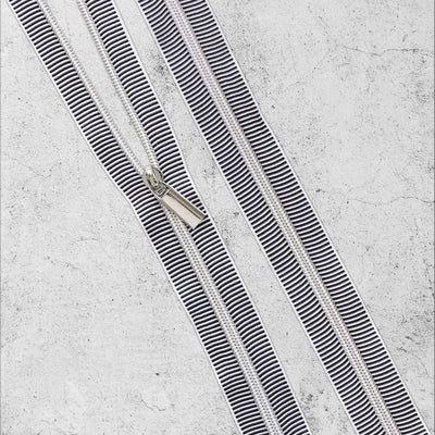 Zipper By The Yard Teeth #5 - Black + White Striped Tape