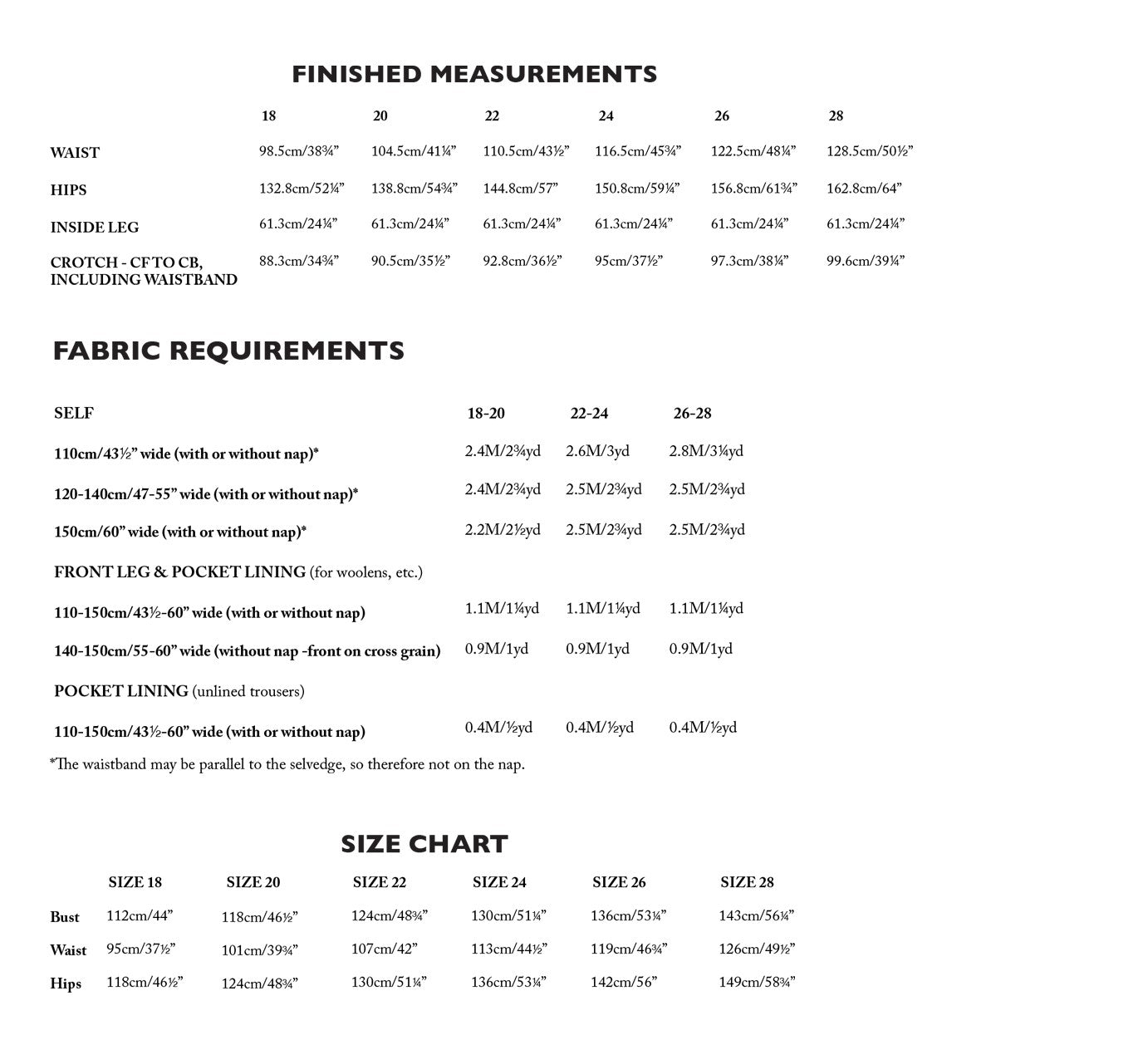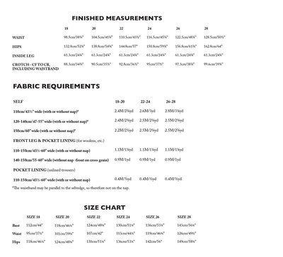 Fabric suggestions - The Pegs are ideally suited to a mid-heavyweight cotton canvas, 8oz organic sanded twill, corduroy, light-medium weight woollens and 7-10oz denim. Lighter weight cloths like linen and tencel-linen will give you a softer silhouette.