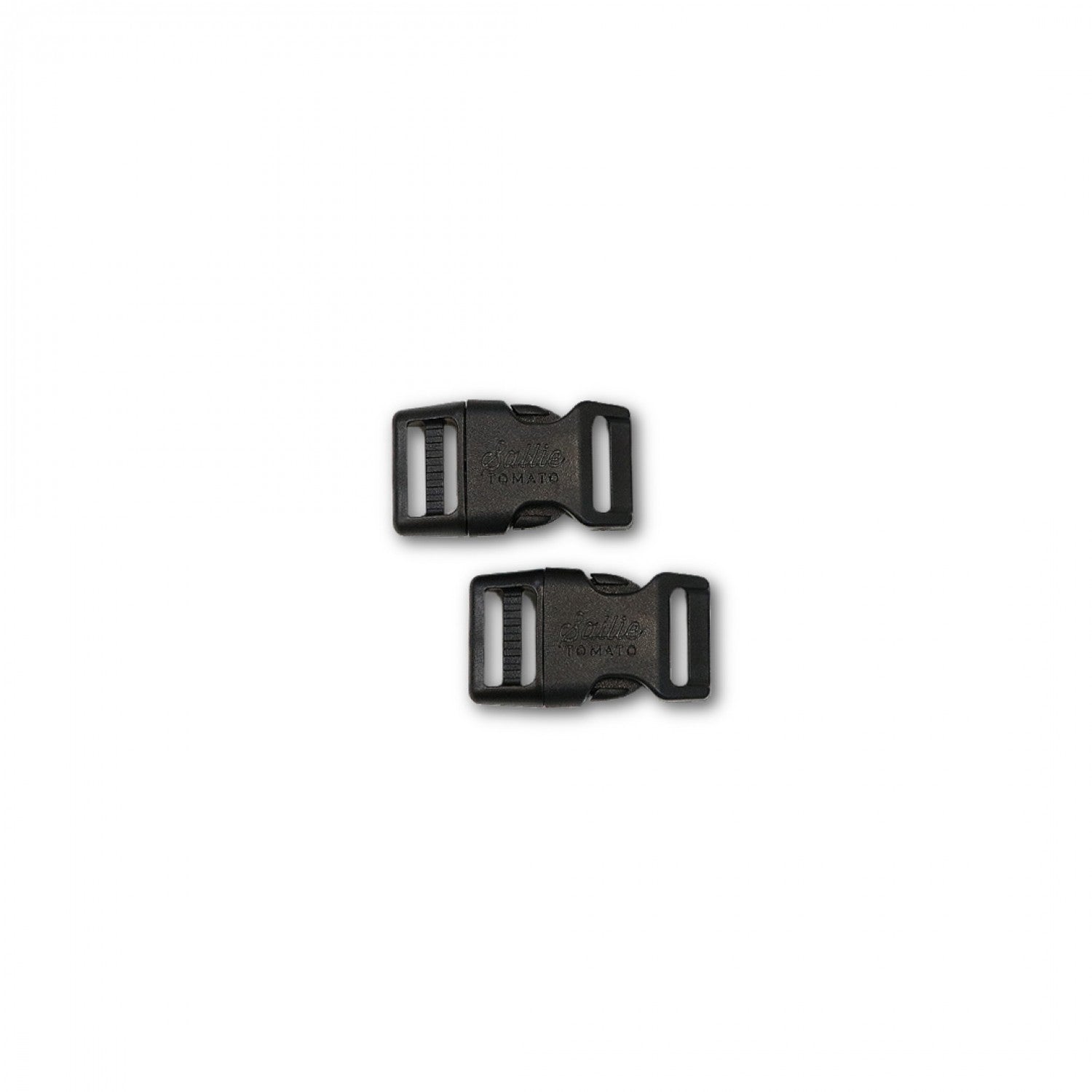 Get a two-pack of these Sallie Tomato laser-engraved plastic side release buckles! Available in four sizes, these slide release buckles are sturdy, non-porous and easy to use! Use on patterns like the Toto, Ferris, & more!