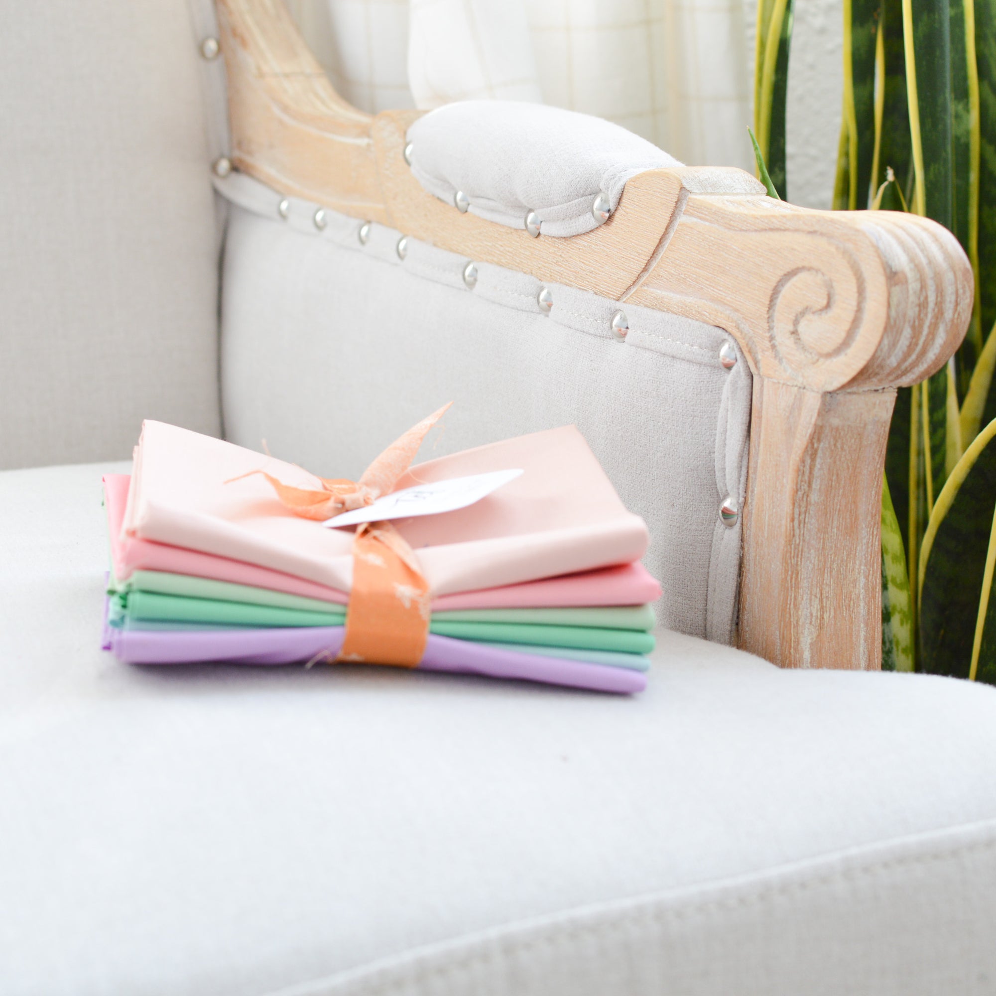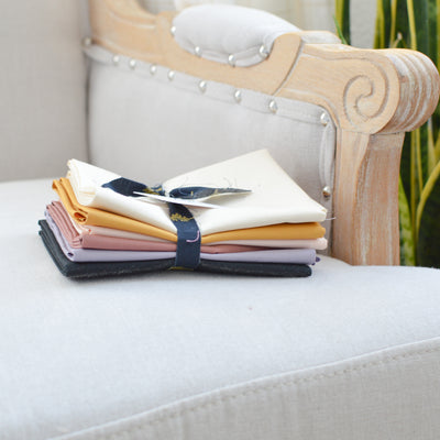 Size of pieces will vary. Minimum size of each piece is 9" (quarter yard) or fat quarter. 1.5 yards total per bundle.
