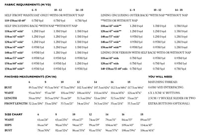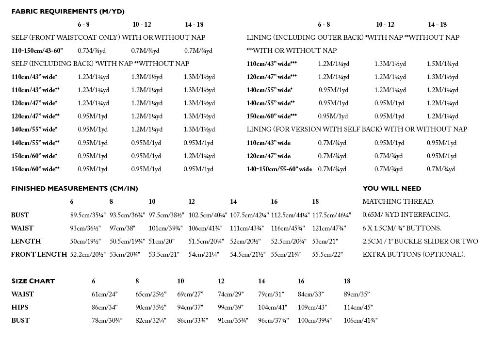 Fabric suggestions - 5-8oz linen, 5-10oz denim, light - medium weight corduroy, wool, wool blends, cotton canvas or twill. For the lining: lightweight wovens such as calico, cotton lawn, cotton, cotton blends, Tencel/linen (when choosing your cloth consider that the lining fabric may be visible).