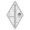 Use this mini 60 Degree Tiny Diamond Ruler to cut diamonds, hexagons, triangles, and 120 degree side-setting triangles up to 3-1/2in. • Easy to read black and white markings • Maximize your fabric usage by cutting shapes from strips • Strip sets make interesting deign possibilities when cut with this ruler • Comes with fully illustrated step by step instructions • Scan the QR Code printed on the instructions to view a how-to video of these features and to see the patterns that can be made with this ruler • Ruler slides easily over the fabric until pressure is applied. Then our exclusive grip holds the fabric in place while cutting, eliminating slipping and miss-cuts