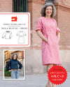 An elegant but relaxed blouse or dress featuring gathers at the neck, raglan sleeves, princess seams for fit, and a simple keyhole closure at the back. The blouse has a ruffle collar and full-length sleeves with gathers at the wrist, while the dress includes front pockets at the princess seams, elbow-length gathered sleeves, and a front waistband with an attached wraparound belt that buttons at the back. This is an easy style to sew and includes cup sizes to help you get a great fit.