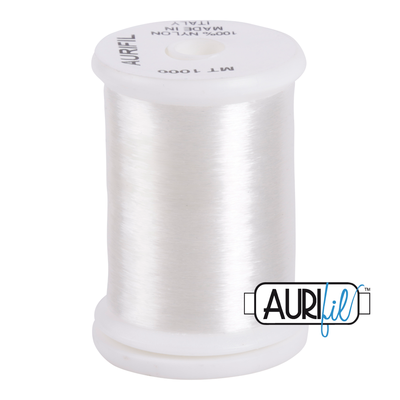 Aurifil’s Monofilament Invisible Thread Made in Italy, is made of nylon and available in two colors: smoke (for dark fabrics) and clear (for light fabrics).