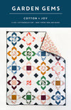 Garden Gems is a beginner-friendly, block-based pattern. It is the perfect pattern to mix and match your favorite FQs and feature your favorite prints or solids in the center square. Pattern includes helpful diagrams, detailed instructions, and a Color-Your-Own page to help you decide your fabric choices