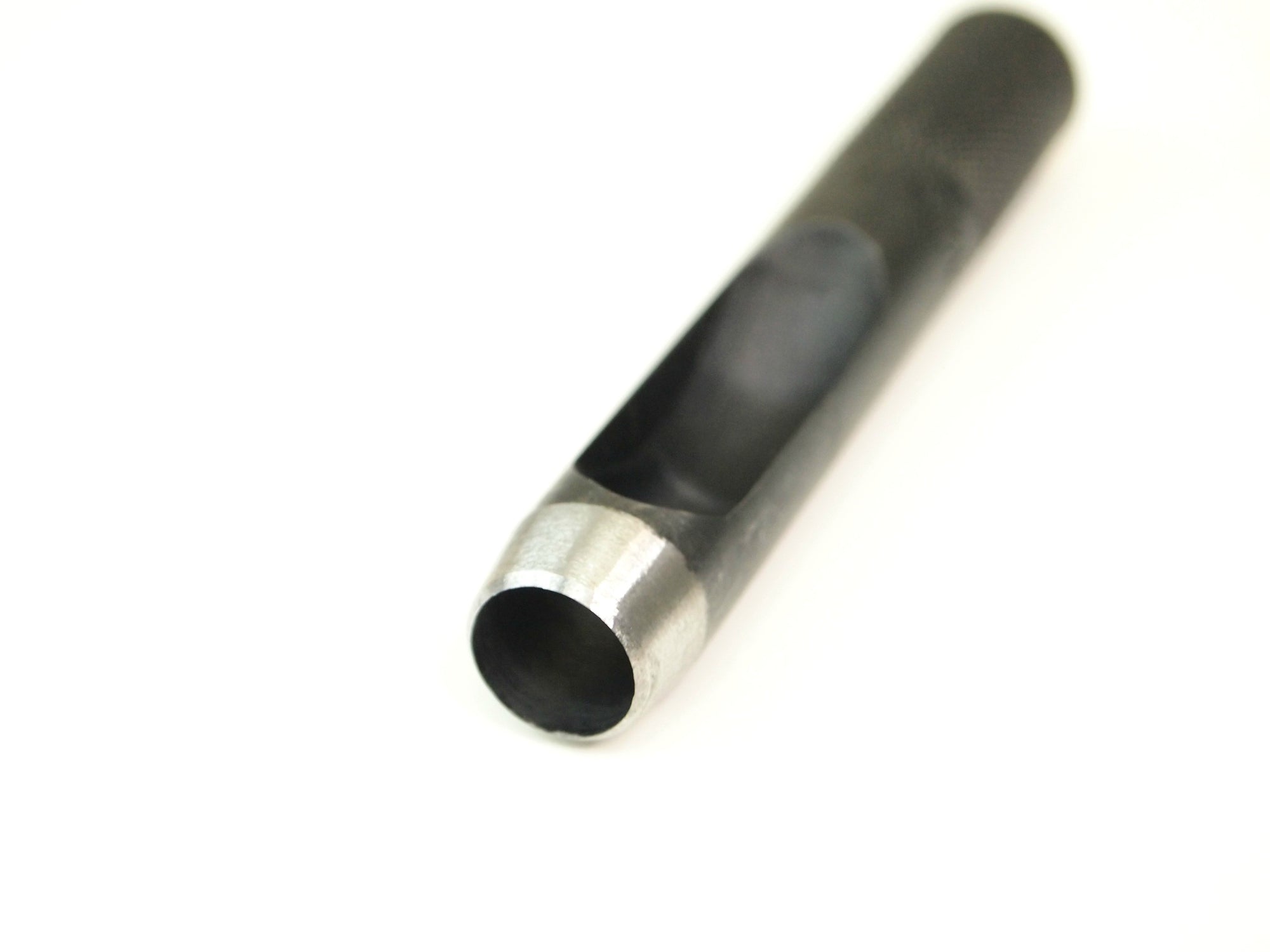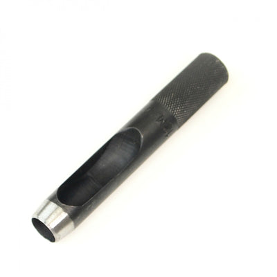 Cut accurate holes, save time and stop wrecking your projects! This cutter is size 12mm, or 1/2in. Simply position over your project where you want to cut a hole, and strike the top of the cutter with a hammer. This cutter can cut through fabric, vinyl, cork or leather.