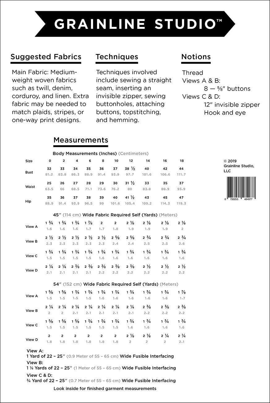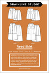 Reed is an A-Line skirt with multiple pocket and closure options. Views A and B feature an inset pocket and a button front closure. Views C and D have patch pockets and a center back invisible zipper. The Reed also has two length options: A and C hit just above the knee while B and D fall mid-calf.