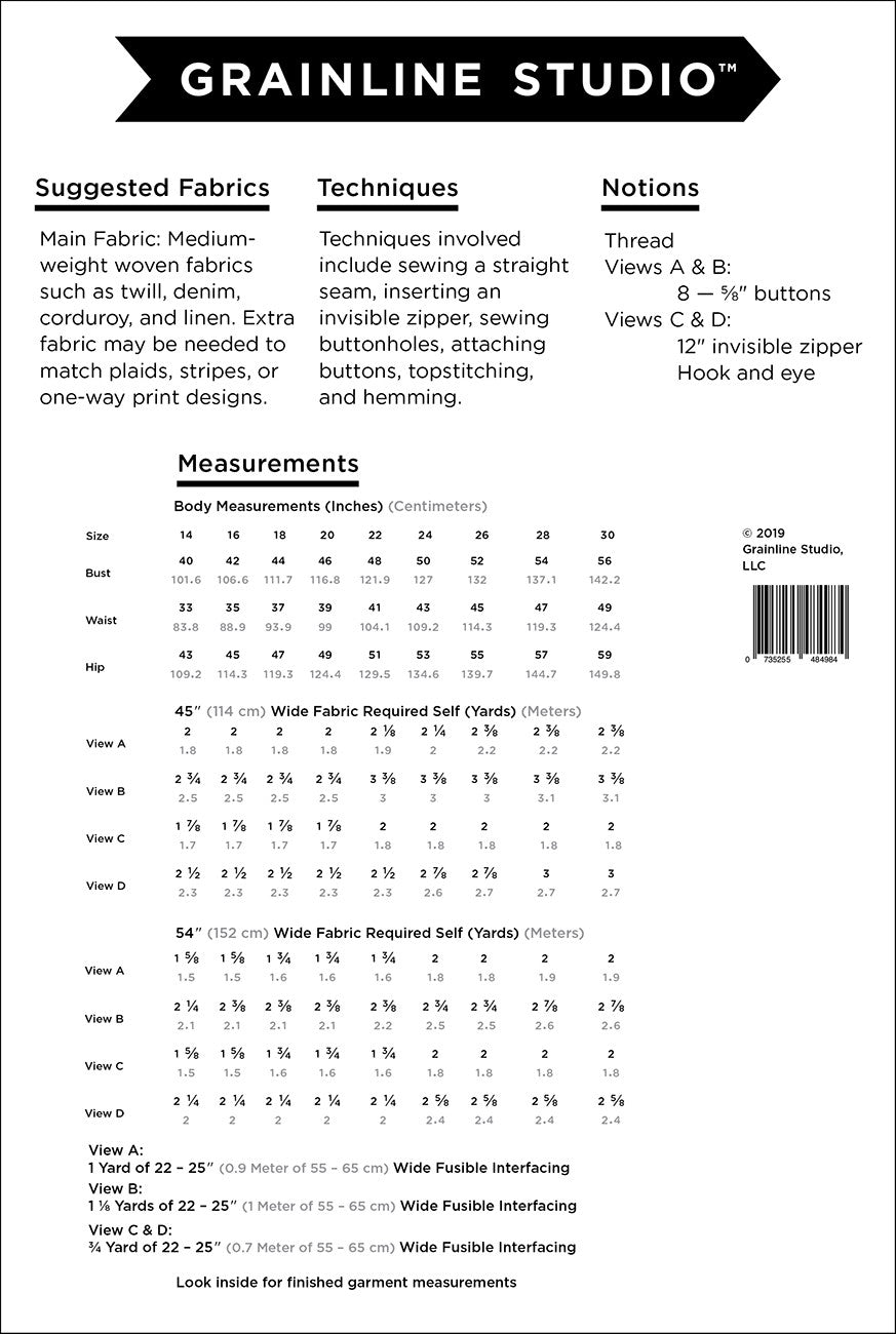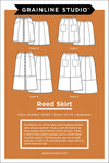 Reed is an A-Line skirt with multiple pocket and closure options. Views A and B feature an inset pocket and a button front closure. Views C and D have patch pockets and a center back invisible zipper. The Reed also has two length options: A and C hit just above the knee while B and D fall mid-calf.