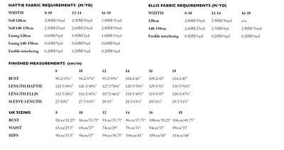 A perfect combination for any mood, if Ellis is a gentle woman then Hattie is a blithe bachelorette. Both feature four delicate neck darts, Ellis, who gets some more feminine shaping from bust darts, is waisted, with set in sleeves and inseam side pockets. Hattie has a lined bodice, dropped waist and bold patch pockets.