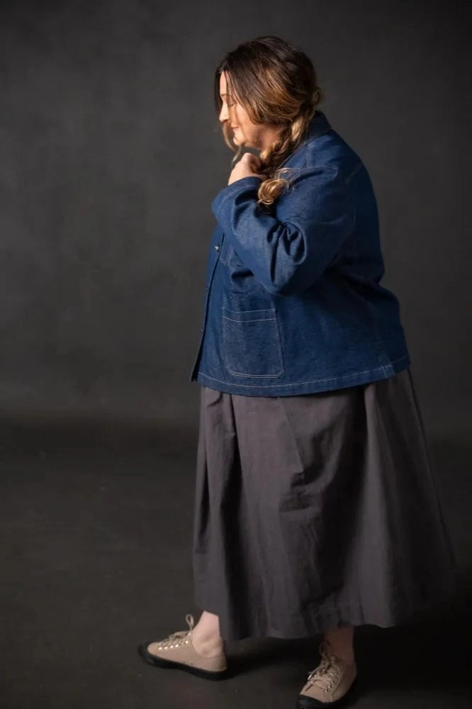 The Ottoline is a boxy workwear jacket with cuff and side seam splits and inside pocket. Although a lovely design detail the vents are a little tricky, so we have included instructions to simplify Ottoline by excluding the side seams and sleeve vents if you like.